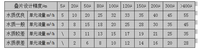 骨架上,在彈簧和進水的壓力作用下就形成了一個外松內(nèi)緊的過濾單元。每個過濾單元中被彈簧和水壓壓緊的疊片便形成了無數(shù)道雜質(zhì)顆粒無法通過的濾網(wǎng),疊片寬度為